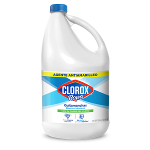 Como alternativa al blanqueador, puedes utilizar un aditivo para el lavado como Clorox® Ropa Quitamanchas Blanco Supremo.